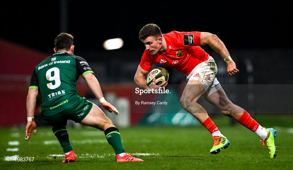 5 March 2021; Shane Daly of Munster in action against Caolin Blade of Connacht during the Guinness PRO14 match between Munster and Connacht at Thomond Park in Limerick. Photo by Ramsey Cardy/Sportsfile