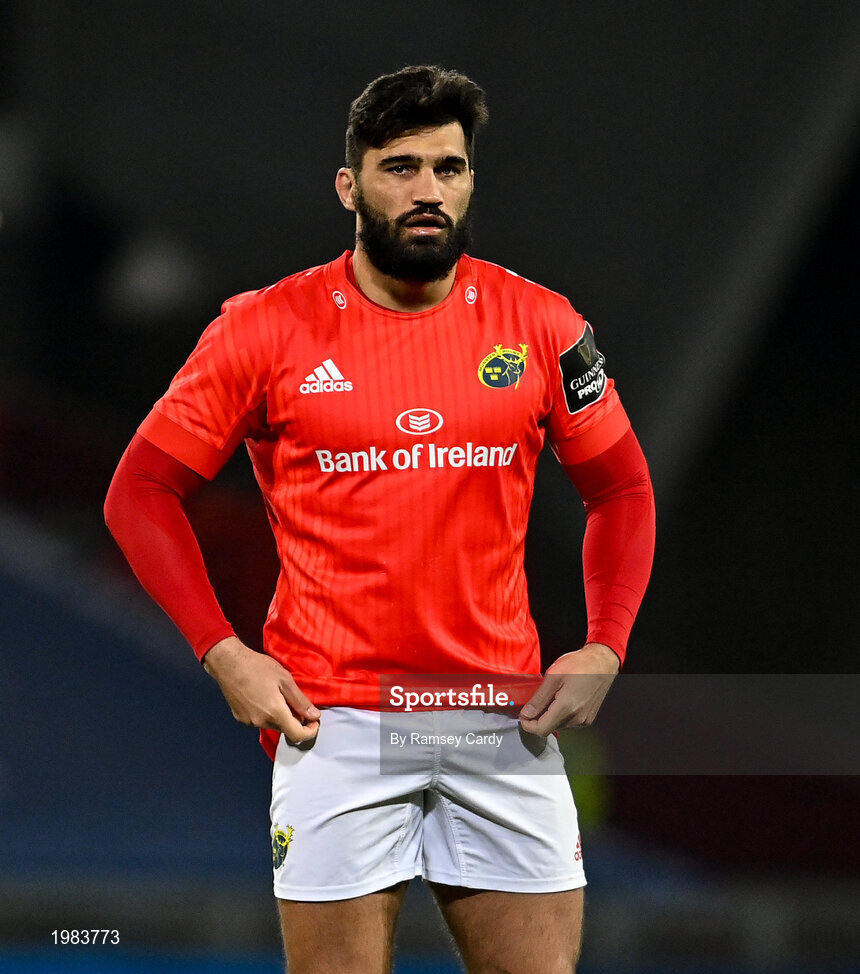 5 March 2021; Damian de Allende of Munster during the Guinness PRO14 match between Munster and Connacht at Thomond Park in Limerick. Photo by Ramsey Cardy/Sportsfile