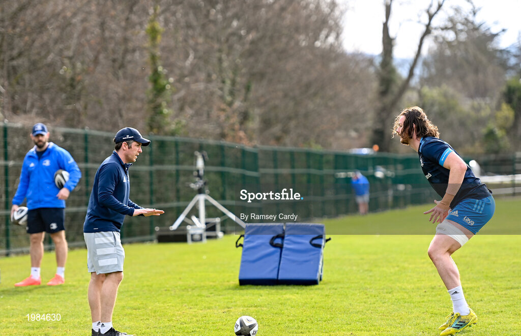 8 March 2021; Jack Dunne with academy strength and conditioning coach Joe McGinley during Leinster Rugby squad training at UCD in Dublin. Photo by Ramsey Cardy/Sportsfile
