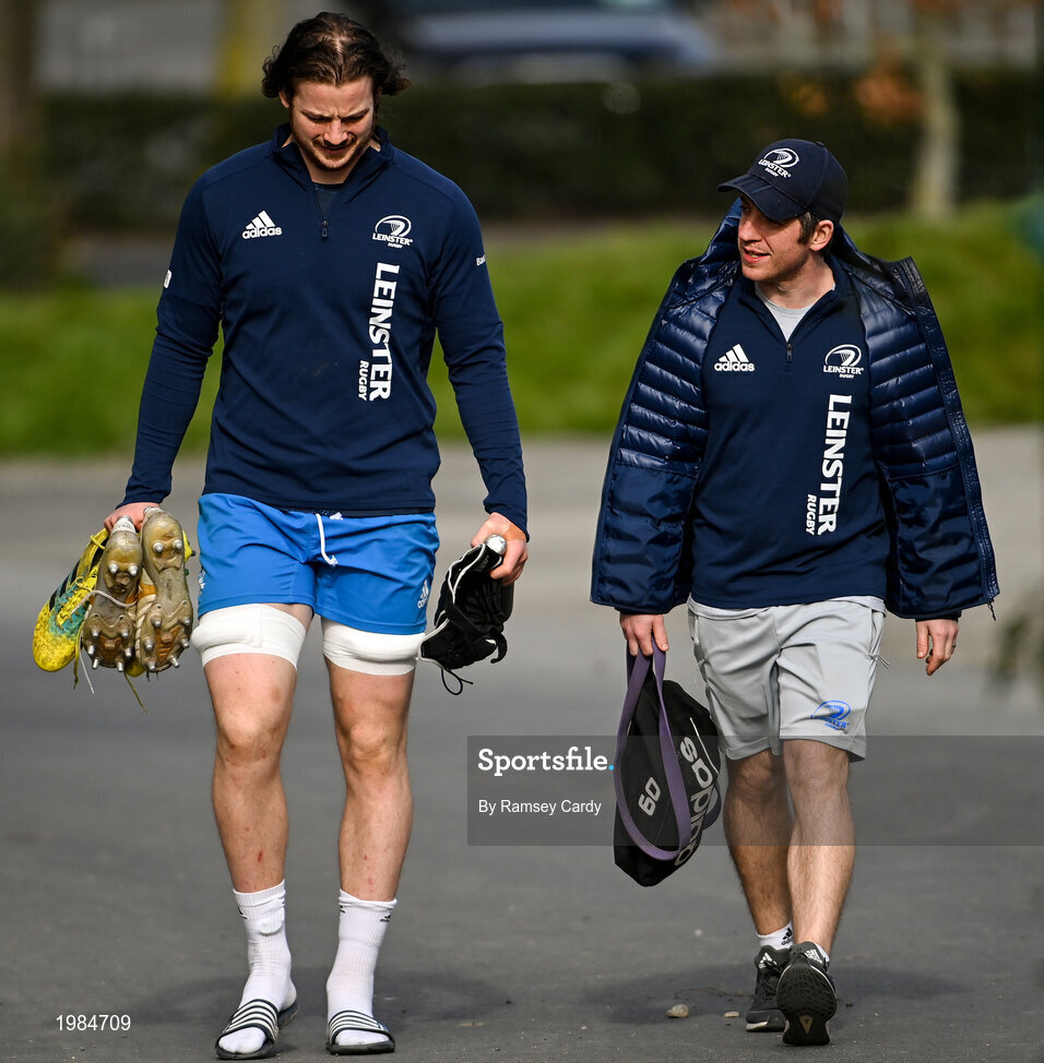8 March 2021; Jack Dunne with academy strength and conditioning coach Joe McGinley during Leinster Rugby squad training at UCD in Dublin. Photo by Ramsey Cardy/Sportsfile