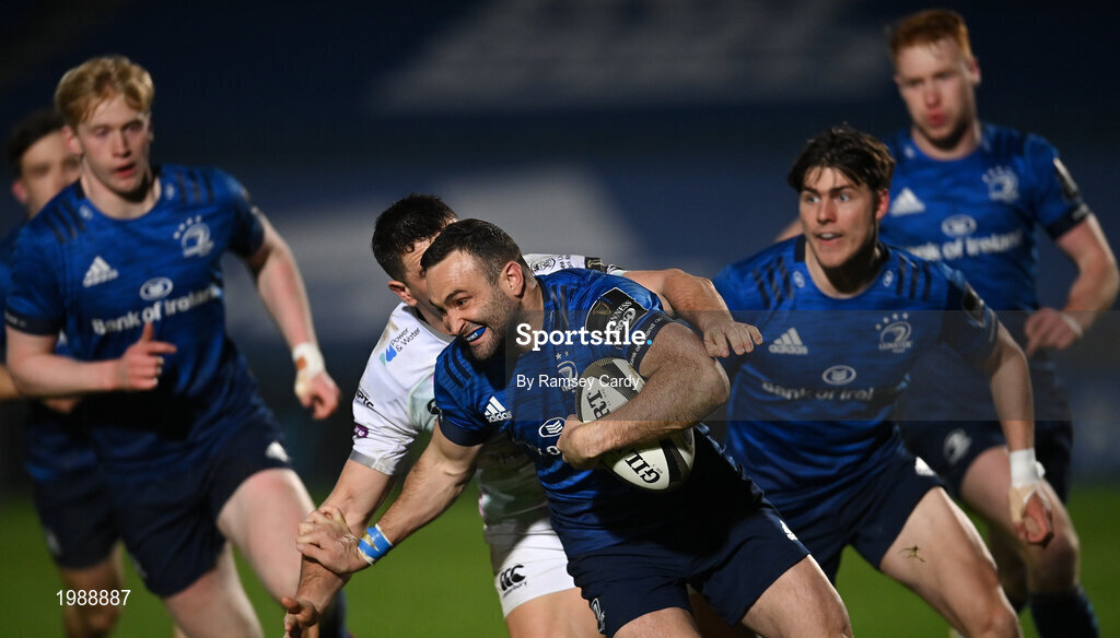 19 March 2021; Dave Kearney of Leinster is tackled by Owen Watkin of Ospreys during the Guinness PRO14 match between Leinster and Ospreys at RDS Arena in Dublin. Photo by Ramsey Cardy/Sportsfile