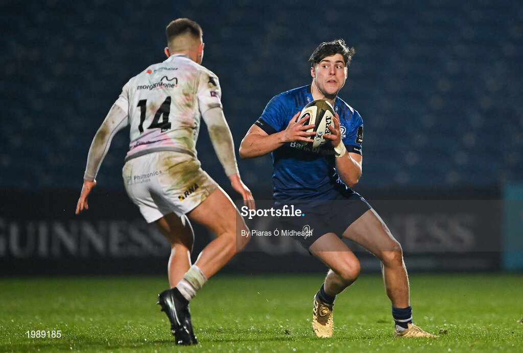 19 March 2021; Max O'Reilly of Leinster in action against Dewi Cross of Ospreys during the Guinness PRO14 match between Leinster and Ospreys at RDS Arena in Dublin. Photo by Piaras Ó Mídheach/Sportsfile