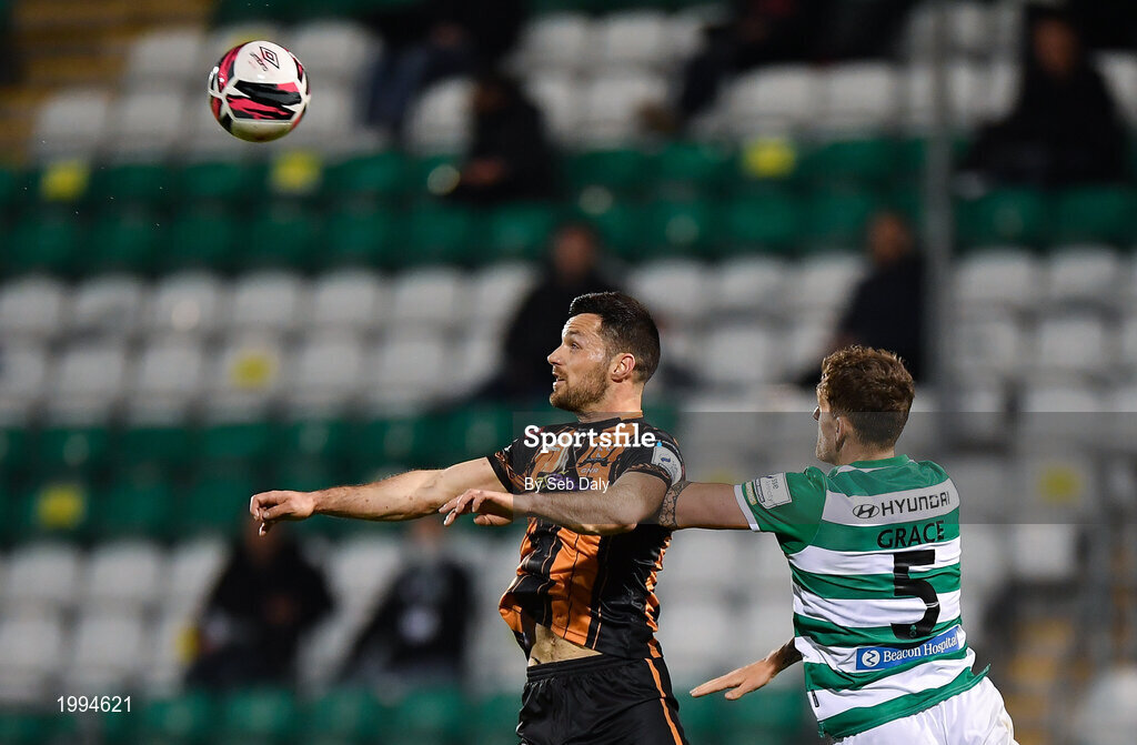 2 April 2021; Patrick Hoban of Dundalk in action against Lee Grace of Shamrock Rovers during the SSE Airtricity League Premier Division match between Shamrock Rovers and Dundalk at Tallaght Stadium in Dublin. Photo by Seb Daly/Sportsfile
