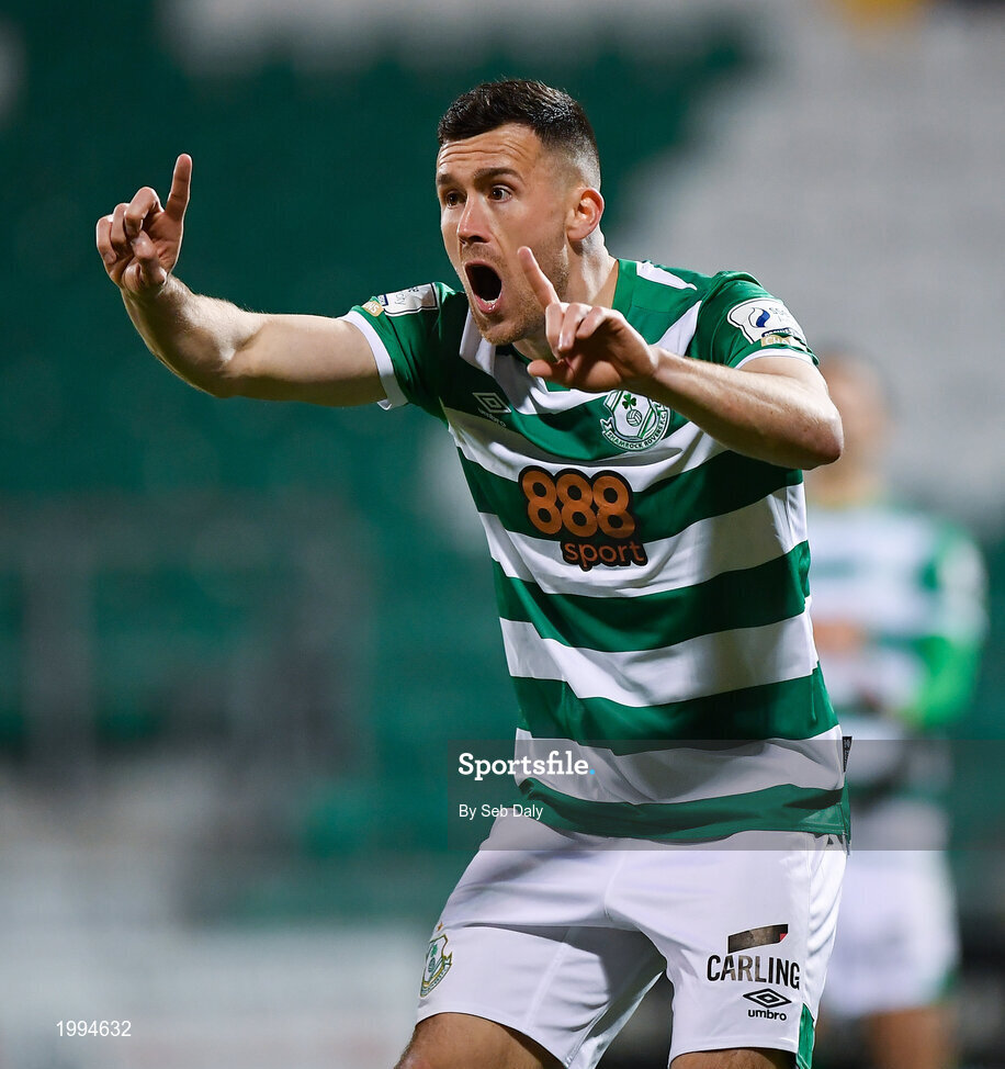2 April 2021; Aaron Greene of Shamrock Rovers appeals to the linesman after having a goal disallowed for offside during the SSE Airtricity League Premier Division match between Shamrock Rovers and Dundalk at Tallaght Stadium in Dublin. Photo by Seb Daly/Sportsfile