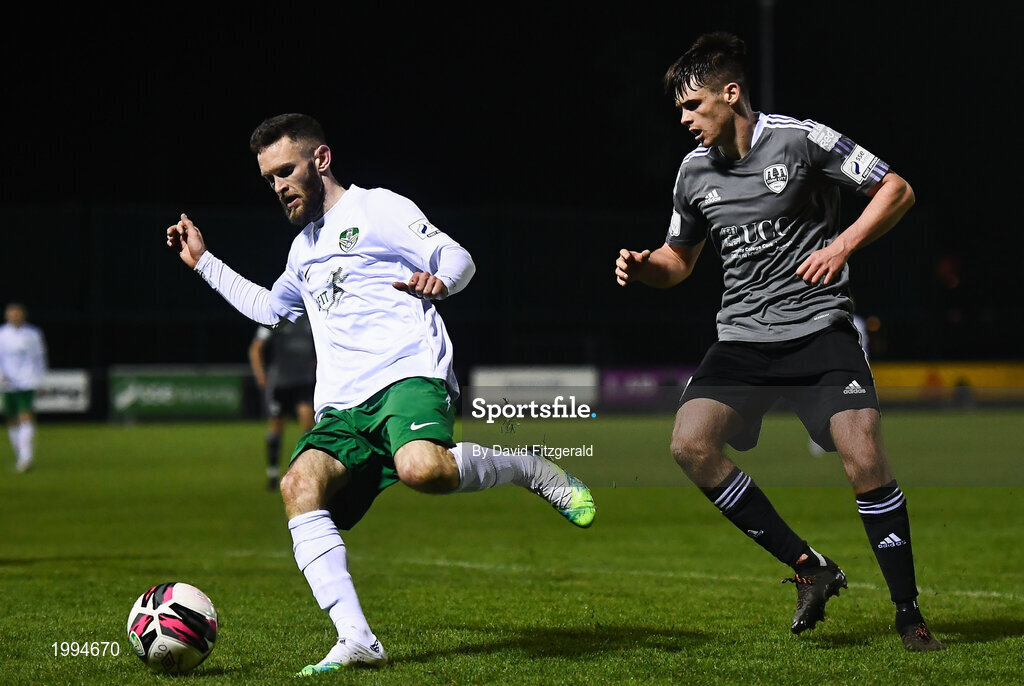 2 April 2021; Kieran Marty Waters of Cabinteely in action against Ronan Hurley of Cork City during the SSE Airtricity League First Division match between Cabinteely and Cork City at Stradbrook Park in Blackrock, Dublin. Photo by David Fitzgerald/Sportsfile