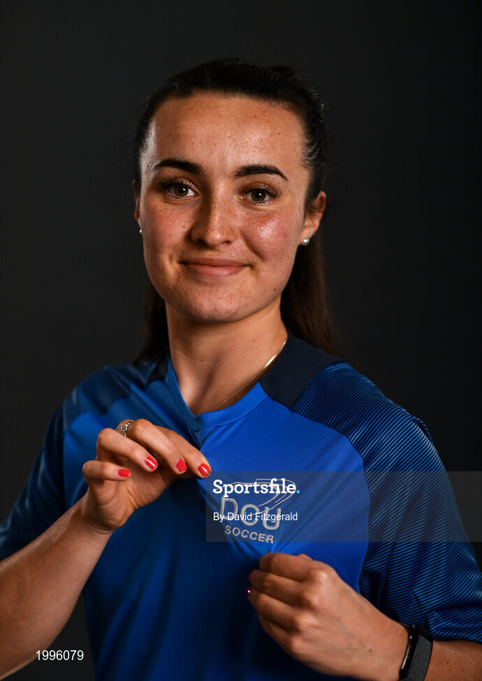 13 April 2021; Republic of Ireland's Niamh Farrelly, wearing a DCU jersey, is calling on more girls to pursue third level education in tandem with playing football though colleges & universities. Photo by David Fitzgerald/Sportsfile