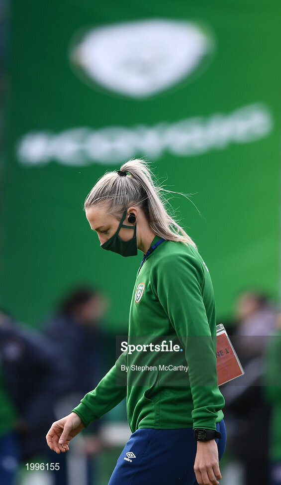 8 April 2021; Louise Quinn of Republic of Ireland before the women's international friendly match between Republic of Ireland and Denmark at Tallaght Stadium in Dublin. Photo by Stephen McCarthy/Sportsfile