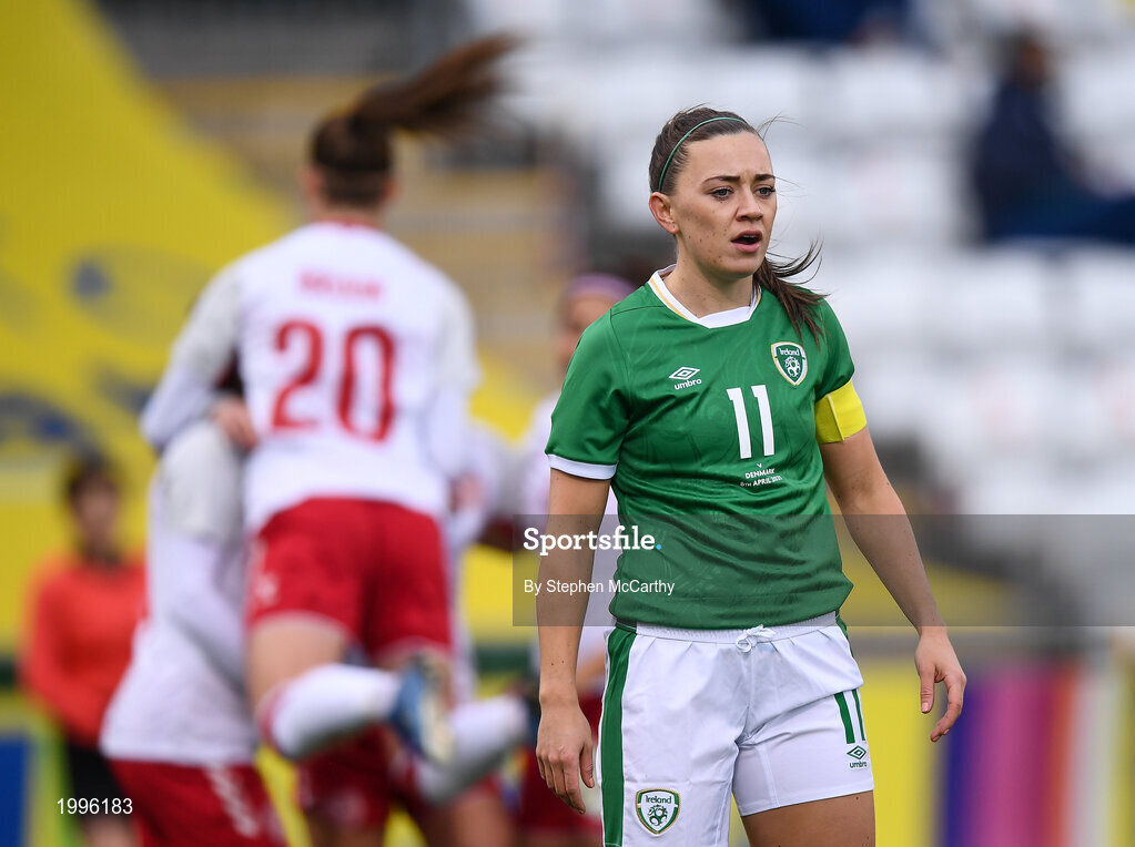 8 April 2021; Republic of Ireland captain Katie McCabe after Denmark scored their first goal during the women's international friendly match between Republic of Ireland and Denmark at Tallaght Stadium in Dublin. Photo by Stephen McCarthy/Sportsfile