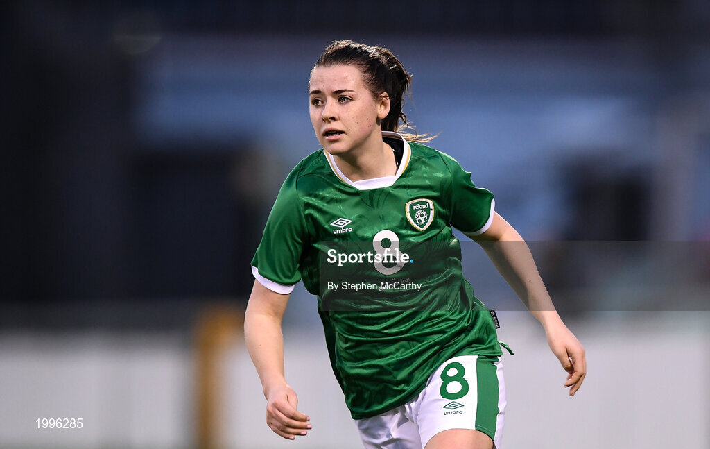 8 April 2021; Emily Whelan of Republic of Ireland during the women's international friendly match between Republic of Ireland and Denmark at Tallaght Stadium in Dublin. Photo by Stephen McCarthy/Sportsfile