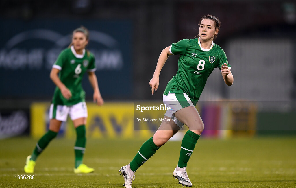 8 April 2021; Emily Whelan of Republic of Ireland during the women's international friendly match between Republic of Ireland and Denmark at Tallaght Stadium in Dublin. Photo by Stephen McCarthy/Sportsfile
