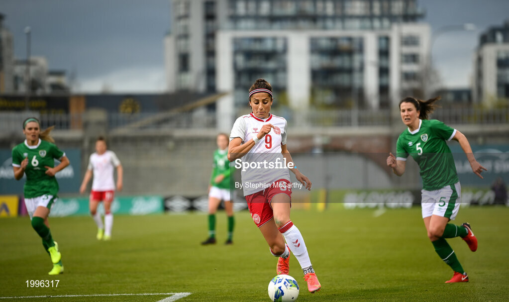 8 April 2021; Nadia Nadim of Denmark during the women's international friendly match between Republic of Ireland and Denmark at Tallaght Stadium in Dublin. Photo by Stephen McCarthy/Sportsfile