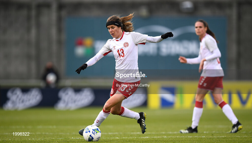 8 April 2021; Sofie Junge of Denmark during the women's international friendly match between Republic of Ireland and Denmark at Tallaght Stadium in Dublin. Photo by Stephen McCarthy/Sportsfile