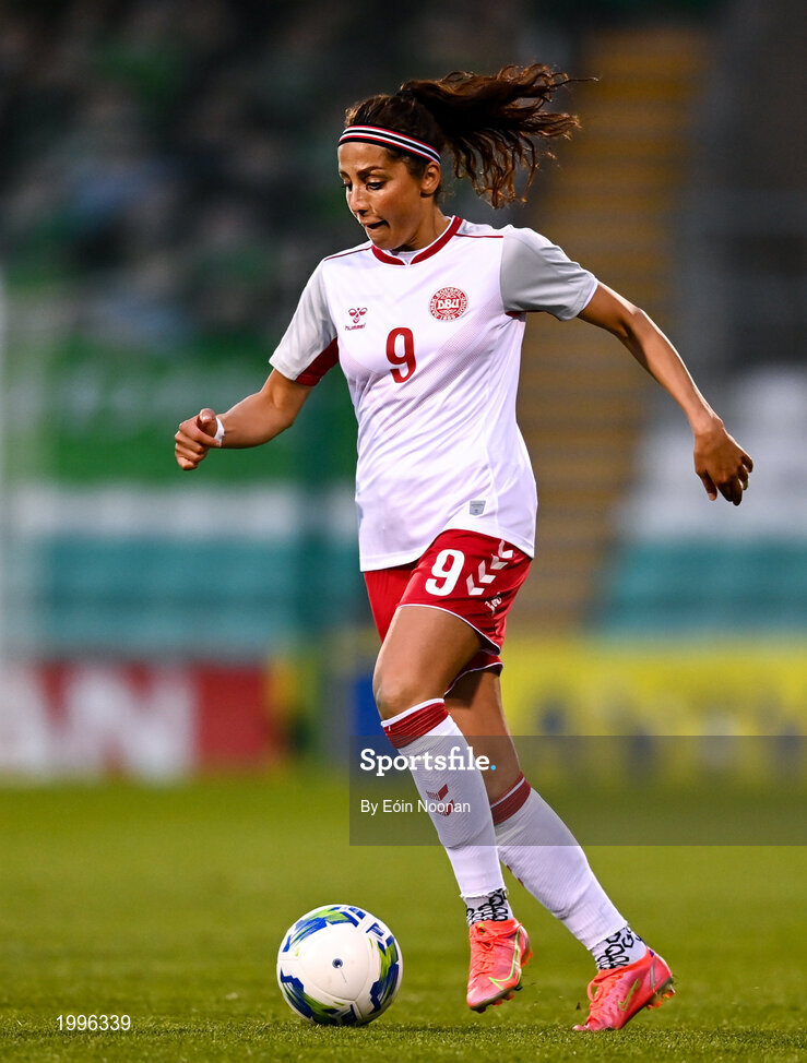 8 April 2021; Nadia Nadim of Denmark during the women's international friendly match between Republic of Ireland and Denmark at Tallaght Stadium in Dublin. Photo by Eóin Noonan/Sportsfile