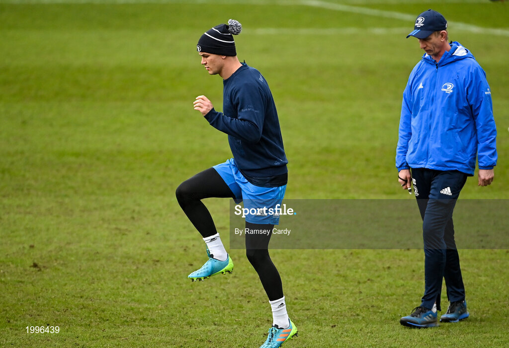 9 April 2021; Jonathan Sexton and head coach Leo Cullen during the Leinster Rugby captain's run at Sandy Park in Exeter, England. Photo by Ramsey Cardy/Sportsfile
