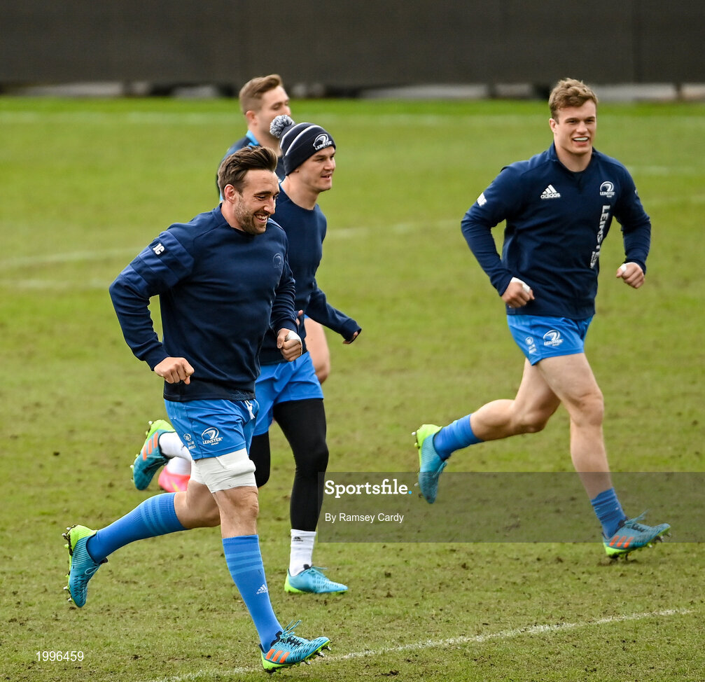 9 April 2021; Jack Conan, left, Jonathan Sexton, centre, and Josh van der Flier during the Leinster Rugby captain's run at Sandy Park in Exeter, England. Photo by Ramsey Cardy/Sportsfile