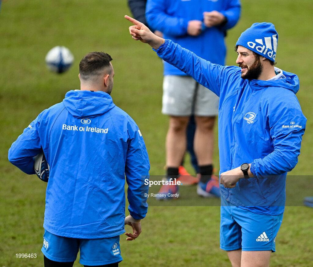 9 April 2021; Robbie Henshaw, right, and Dave Kearney during the Leinster Rugby captain's run at Sandy Park in Exeter, England. Photo by Ramsey Cardy/Sportsfile