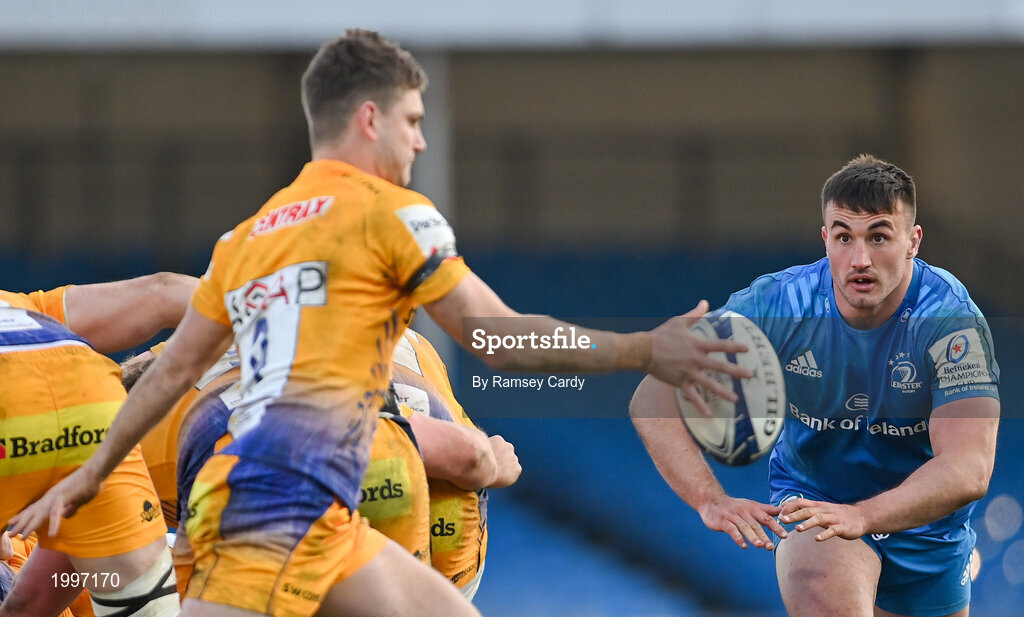 10 April 2021; Rónan Kelleher of Leinster during the Heineken Champions Cup Pool Quarter-Final match between Exeter Chiefs and Leinster at Sandy Park in Exeter, England. Photo by Ramsey Cardy/Sportsfile