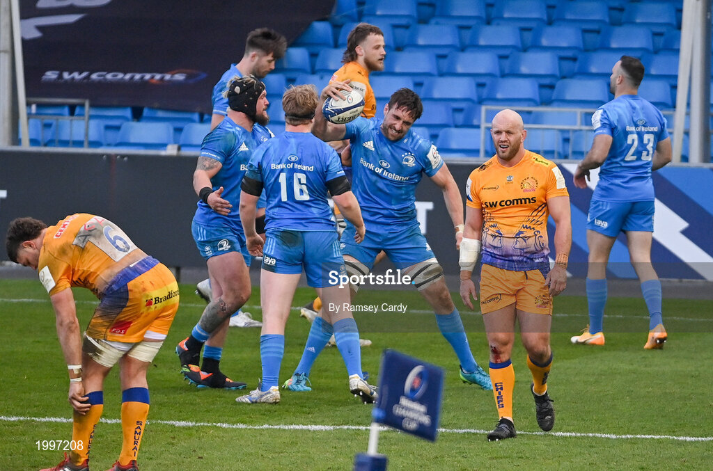 10 April 2021; Jack Conan of Leinster celebrates at the final whistle of the Heineken Champions Cup Pool Quarter-Final match between Exeter Chiefs and Leinster at Sandy Park in Exeter, England. Photo by Ramsey Cardy/Sportsfile