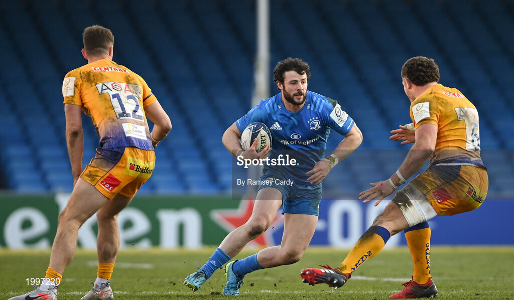 10 April 2021; Robbie Henshaw of Leinster during the Heineken Champions Cup Pool Quarter-Final match between Exeter Chiefs and Leinster at Sandy Park in Exeter, England. Photo by Ramsey Cardy/Sportsfile