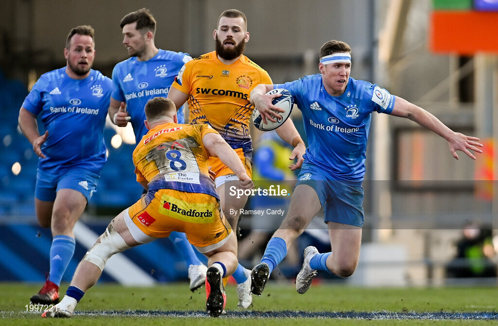 10 April 2021; Rory O'Loughlin of Leinster during the Heineken Champions Cup Pool Quarter-Final match between Exeter Chiefs and Leinster at Sandy Park in Exeter, England. Photo by Ramsey Cardy/Sportsfile