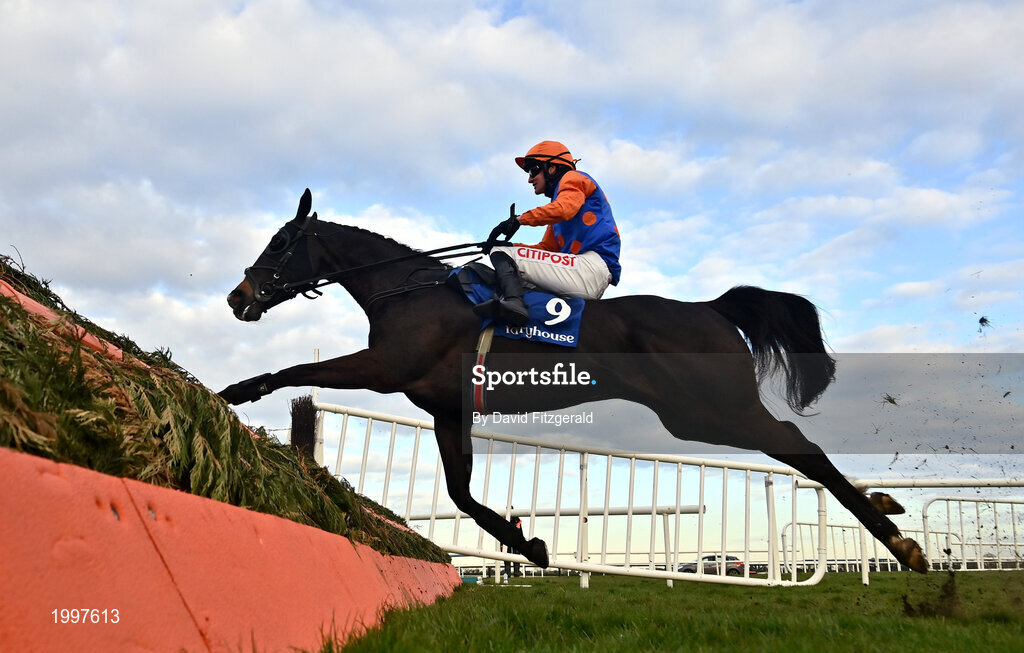 13 April 2021; Thegoaheadman, with Danny Mullins up, clear the last during the Free Racecourse Wi-fi handicap steeplechase at Fairyhouse Racecourse in Ratoath, Meath. Photo by David Fitzgerald/Sportsfile