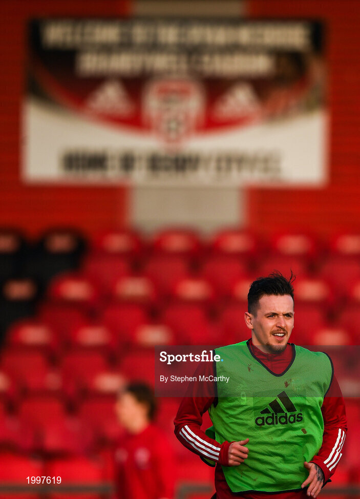 13 April 2021; David Parkhouse of Derry City before the SSE Airtricity League Premier Division match between Derry City and Shamrock Rovers at the Ryan McBride Brandywell Stadium in Derry. Photo by Stephen McCarthy/Sportsfile
