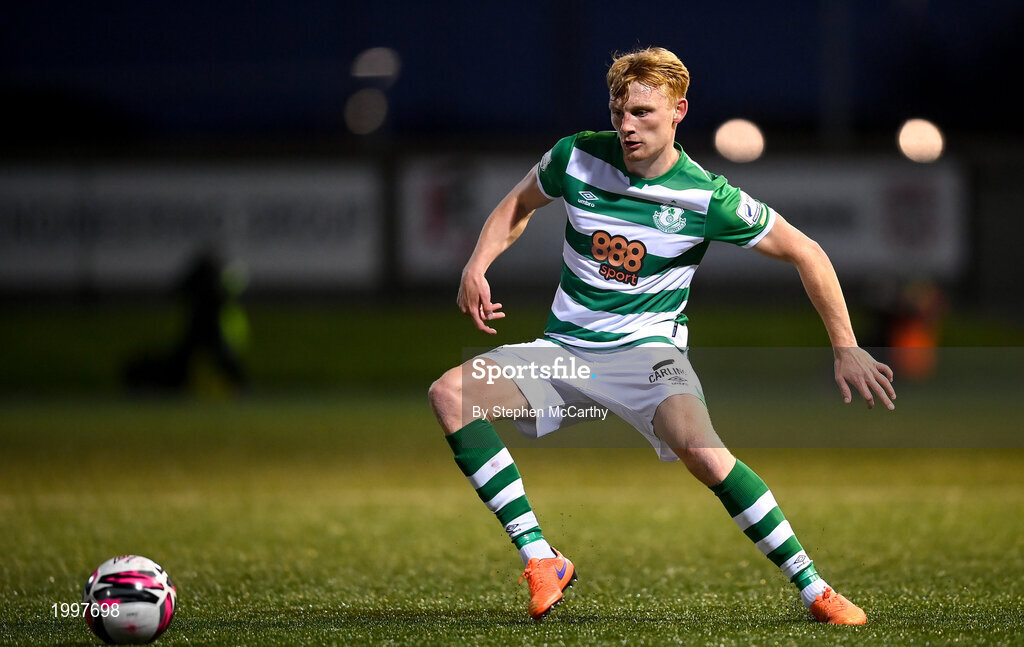 13 April 2021; Liam Scales of Shamrock Rovers during the SSE Airtricity League Premier Division match between Derry City and Shamrock Rovers at the Ryan McBride Brandywell Stadium in Derry. Photo by Stephen McCarthy/Sportsfile