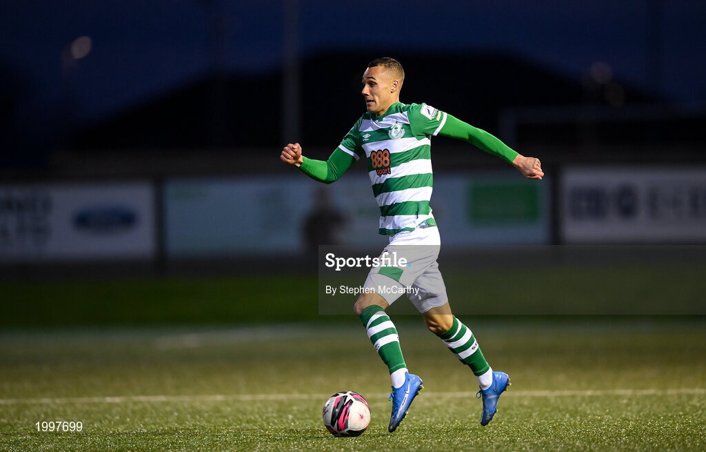 13 April 2021; Graham Burke of Shamrock Rovers during the SSE Airtricity League Premier Division match between Derry City and Shamrock Rovers at the Ryan McBride Brandywell Stadium in Derry. Photo by Stephen McCarthy/Sportsfile