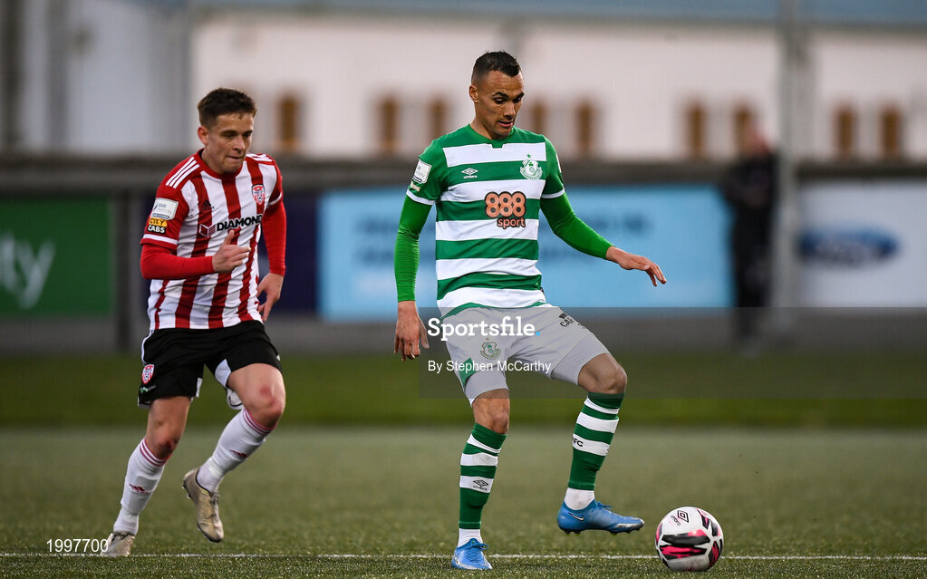 13 April 2021; Graham Burke of Shamrock Rovers during the SSE Airtricity League Premier Division match between Derry City and Shamrock Rovers at the Ryan McBride Brandywell Stadium in Derry. Photo by Stephen McCarthy/Sportsfile
