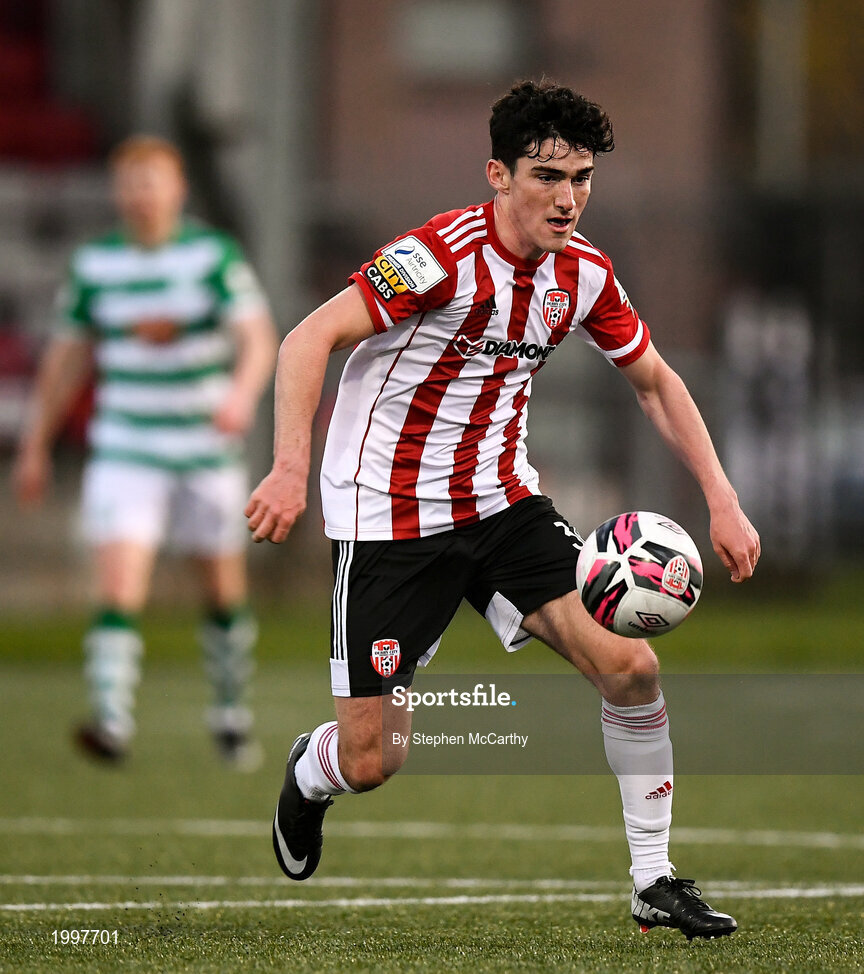 13 April 2021; Brendan Barr of Derry City during the SSE Airtricity League Premier Division match between Derry City and Shamrock Rovers at the Ryan McBride Brandywell Stadium in Derry. Photo by Stephen McCarthy/Sportsfile