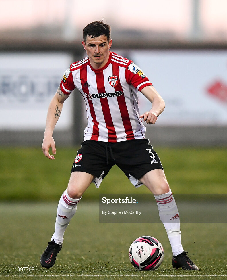 13 April 2021; Ciarán Coll of Derry City during the SSE Airtricity League Premier Division match between Derry City and Shamrock Rovers at the Ryan McBride Brandywell Stadium in Derry. Photo by Stephen McCarthy/Sportsfile