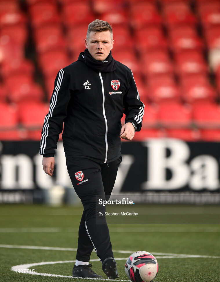 13 April 2021; Derry City coach Conor Loughrey during the SSE Airtricity League Premier Division match between Derry City and Shamrock Rovers at the Ryan McBride Brandywell Stadium in Derry. Photo by Stephen McCarthy/Sportsfile