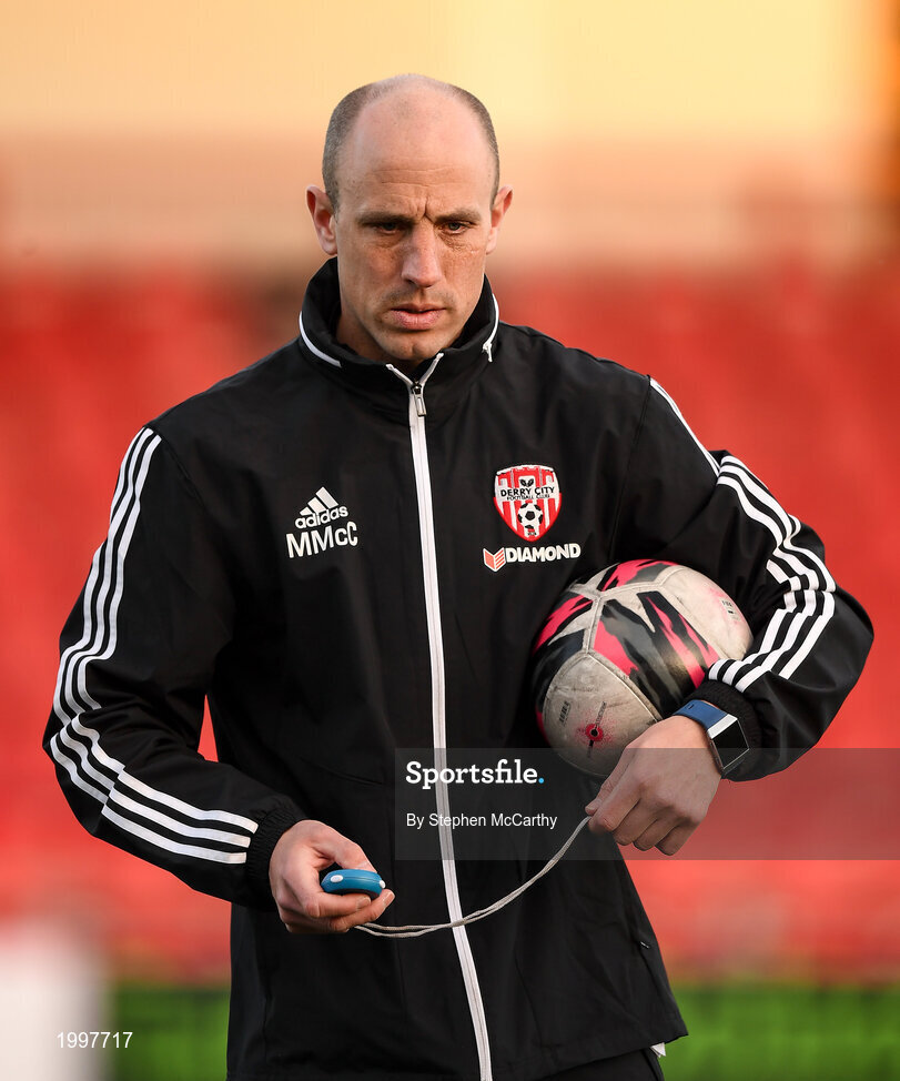 13 April 2021; Derry City coach Mark McChrystal before the SSE Airtricity League Premier Division match between Derry City and Shamrock Rovers at the Ryan McBride Brandywell Stadium in Derry. Photo by Stephen McCarthy/Sportsfile