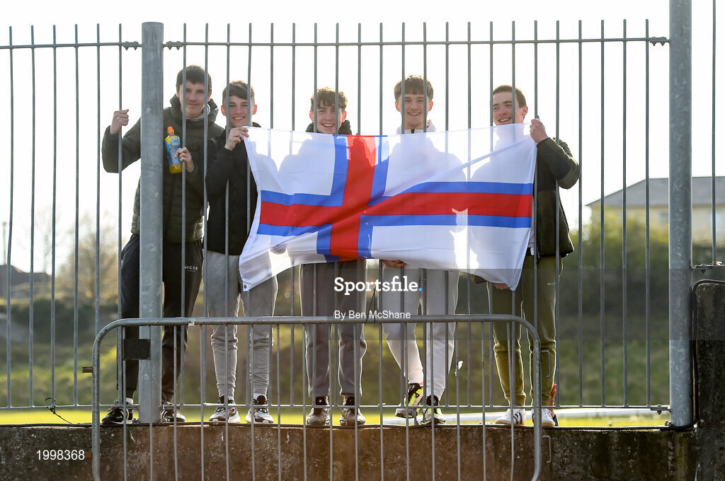 17 April 2021; Dundalk supporters with a Faroe Islands flag before the SSE Airtricity League Premier Division match between Dundalk and St Patrick's Athletic at Oriel Park in Dundalk, Louth. Photo by Ben McShane/Sportsfile