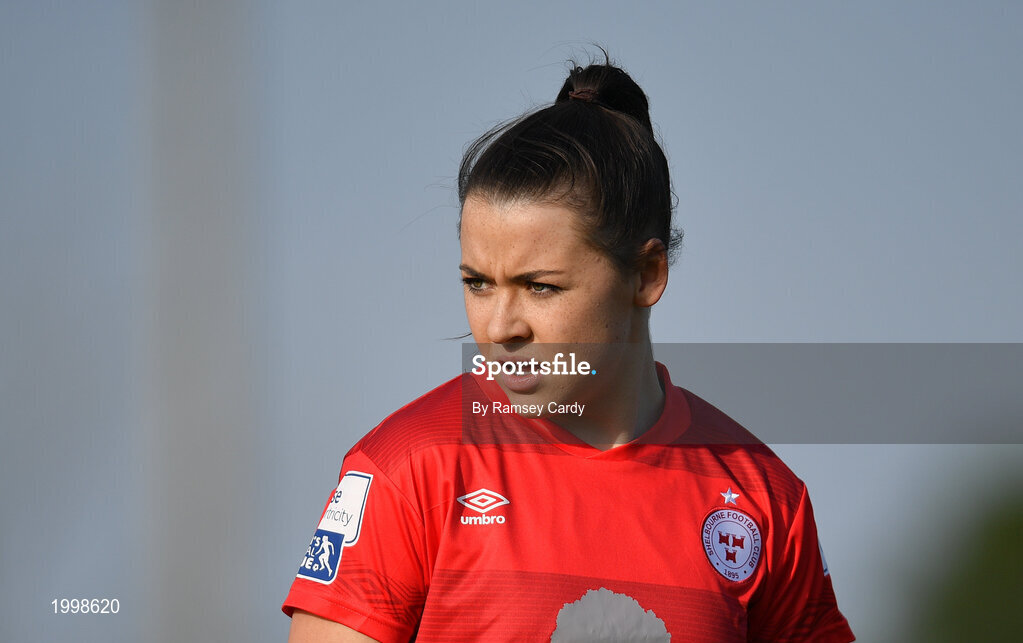 17 April 2021; Emily Whelan of Shelbourne during the SSE Airtricity Women's National League match between Peamount United and Shelbourne at PLR Park in Greenogue, Dublin. Photo by Ramsey Cardy/Sportsfile