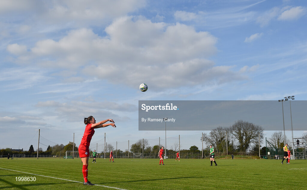17 April 2021; Jess Gargan of Shelbourne takes a throw-in during the SSE Airtricity Women's National League match between Peamount United and Shelbourne at PLR Park in Greenogue, Dublin. Photo by Ramsey Cardy/Sportsfile