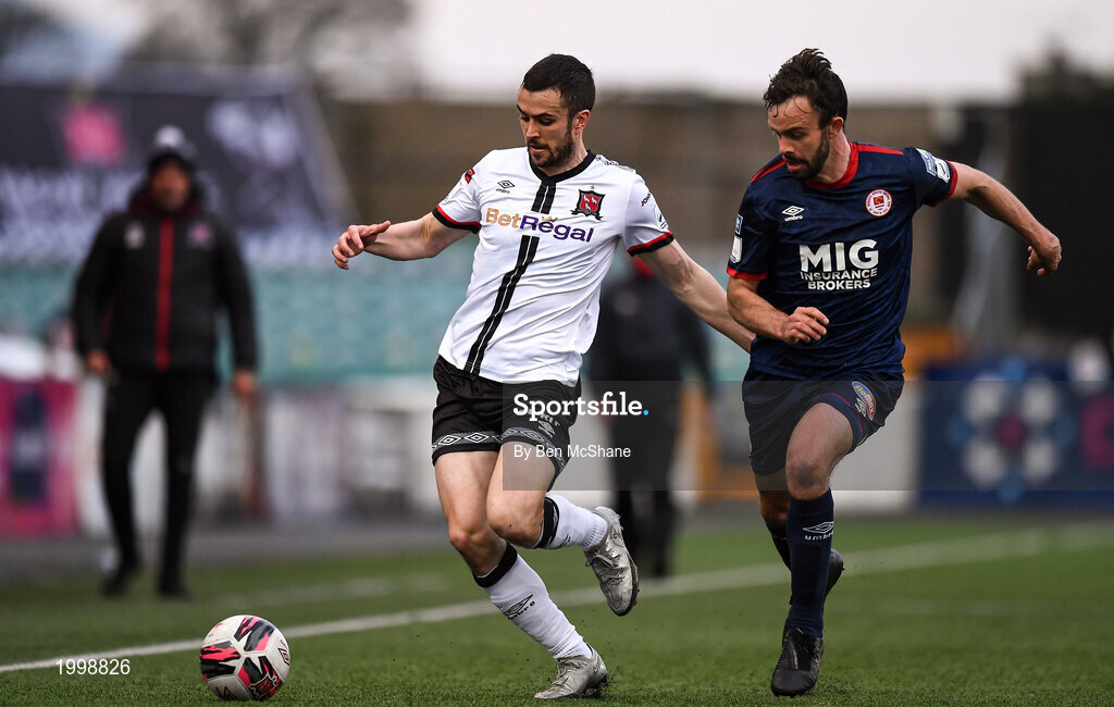 17 April 2021; Michael Duffy of Dundalk and Robbie Benson of St Patrick's Athletic during the SSE Airtricity League Premier Division match between Dundalk and St Patrick's Athletic at Oriel Park in Dundalk, Louth. Photo by Ben McShane/Sportsfile
