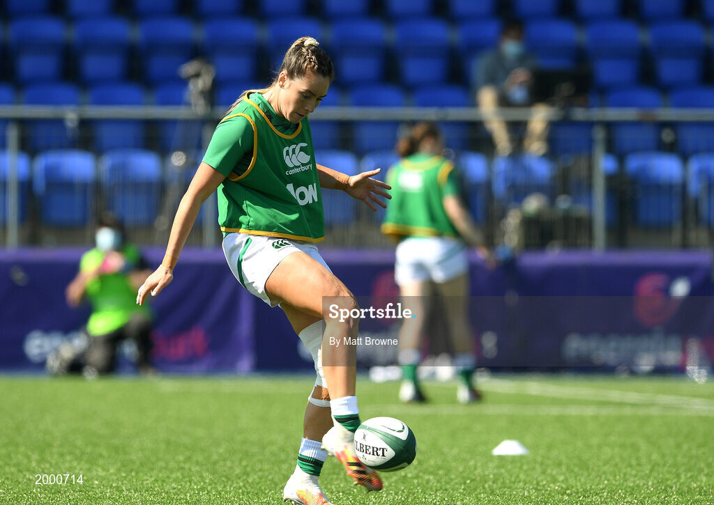 24 April 2021; Eimear Considine of Ireland during the warm-up before the Women's Six Nations Rugby Championship Play-off match between Ireland and Italy at Energia Park in Dublin. Photo by Matt Browne/Sportsfile