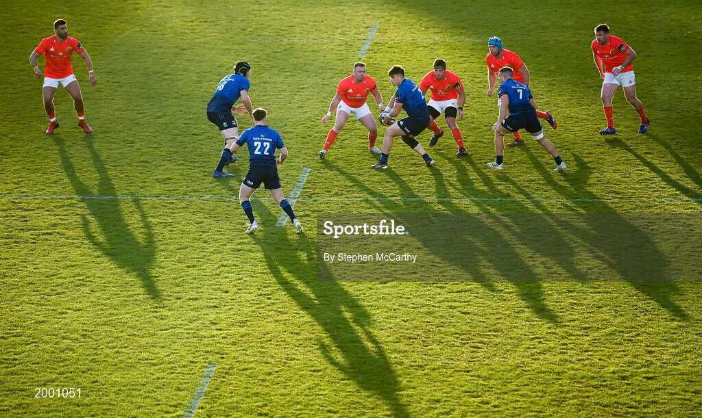 24 April 2021; Dan Sheehan passes to Leinster teammate David Hawkshaw, 22, during the Guinness PRO14 Rainbow Cup match between Leinster and Munster at the RDS Arena in Dublin. Photo by Stephen McCarthy/Sportsfile