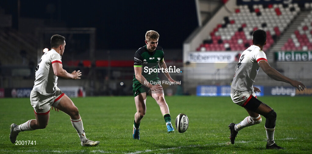 23 April 2021; Conor Fitzgerald of Connacht chips the ball through for his side's fourth try during the Guinness PRO14 Rainbow Cup match between Ulster and Connacht at Kingspan Stadium in Belfast. Photo by David Fitzgerald/Sportsfile