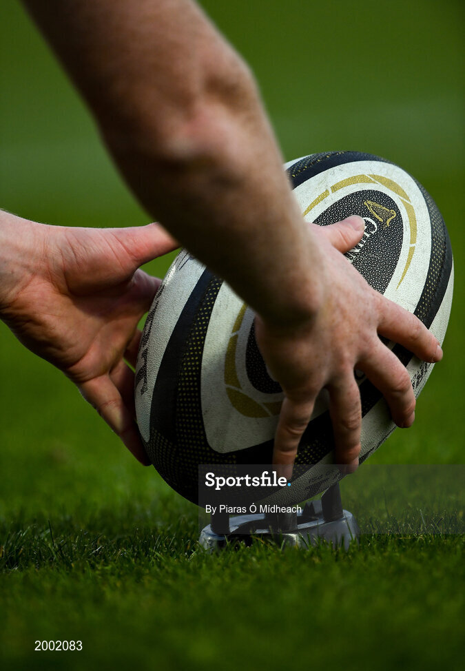24 April 2021; A general view of a match ball at the Guinness PRO14 Rainbow Cup match between Leinster and Munster at RDS Arena in Dublin. Photo by Piaras Ó Mídheach/Sportsfile