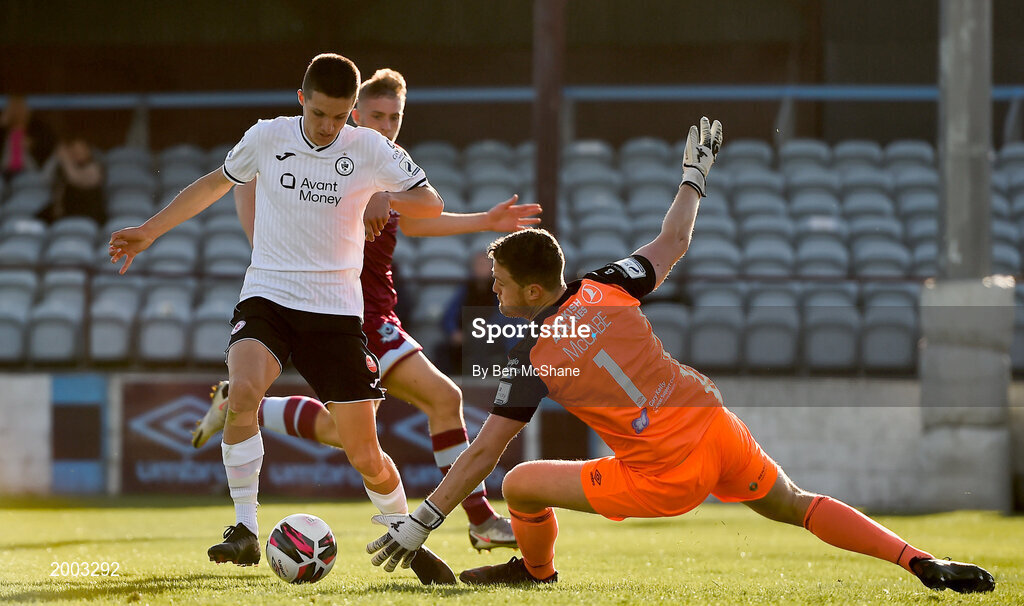 30 April 2021; Johnny Kenny of Sligo Rovers dribbles around Drogheda United goalkeeper Colin McCabe on the way to scoring his side's first goal during the SSE Airtricity League Premier Division match between Drogheda United and Sligo Rovers at Head in the Game Park in Drogheda, Louth. Photo by Ben McShane/Sportsfile