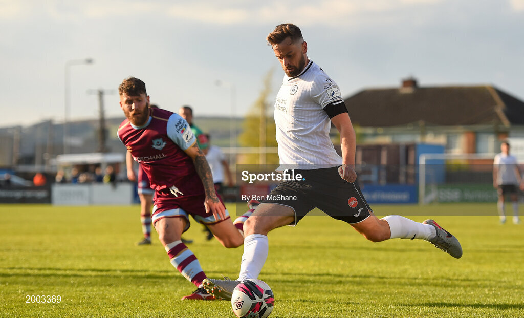 30 April 2021; Greg Bolger of Sligo Rovers in action against Gary Deegan of Drogheda United during the SSE Airtricity League Premier Division match between Drogheda United and Sligo Rovers at Head in the Game Park in Drogheda, Louth. Photo by Ben McShane/Sportsfile