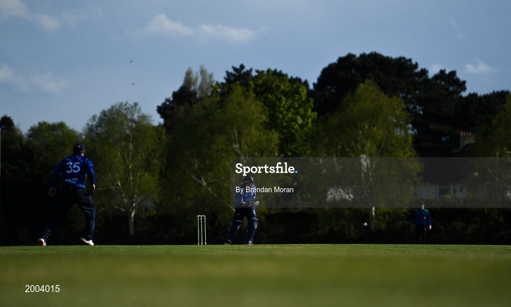 1 May 2021; Jamie Grassi of Leinster Lightning plays a shot on his way to a score of 82 runs during the Inter-Provincial Cup 2021 match between Leinster Lightning and North West Warriors at Pembroke Cricket Club in Dublin. Photo by Brendan Moran/Sportsfile