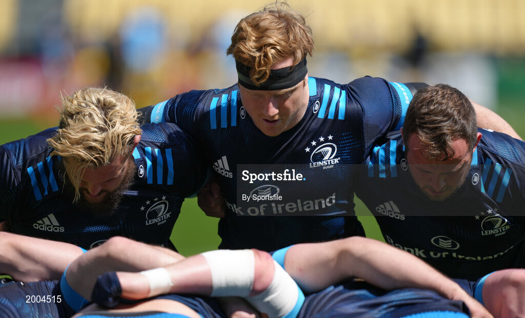 2 May 2021; Leinster forwards, from left, Andrew Porter, James Tracy and Ed Byrne before the Heineken Champions Cup semi-final match between La Rochelle and Leinster at Stade Marcel Deflandre in La Rochelle, France. Photo by Julien Poupart/Sportsfile