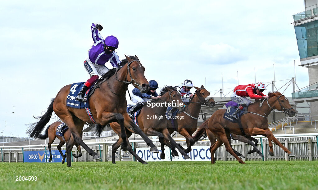 2 May 2021; Mother Earth, with Frankie Dettori up, left, on their way to winning the Qipco 1000 Guineas Stakes at Newmarket Racecourse in Newmarket, England. Hugh Routledge/Sportsfile