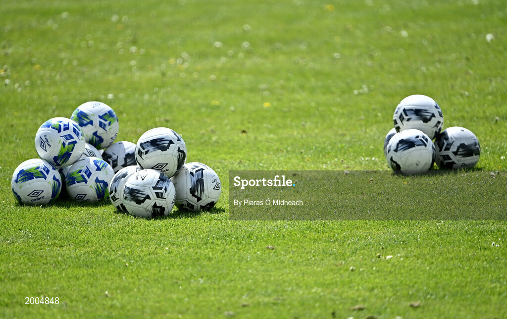 2 May 2021; A general view of footballs before the SSE Airtricity Women's National League match between Treaty United and Peamount United at Jackman Park in Limerick. Photo by Piaras Ó Mídheach/Sportsfile