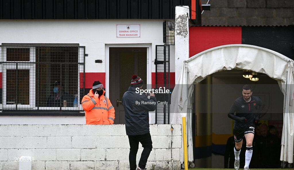 3 May 2021; Michael Duffy of Dundalk runs out prior to the SSE Airtricity League Premier Division match between Longford Town and Dundalk at Bishopsgate in Longford. Photo by Ramsey Cardy/Sportsfile