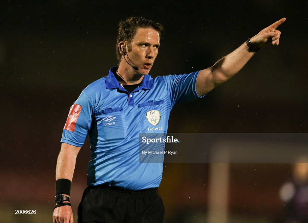 7 May 2021; Referee Eoghan O'Shea during the SSE Airtricity League First Division match between Cork City and Wexford at Turners Cross in Cork. Photo by Michael P Ryan/Sportsfile