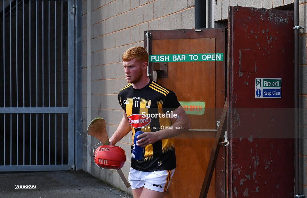 8 May 2021; Kilkenny captain Adrian Mullen leads his team-mates to the pitch before the Allianz Hurling League Division 1 Group B Round 1 match between Dublin and Kilkenny at Parnell Park in Dublin. Photo by Piaras Ó Mídheach/Sportsfile